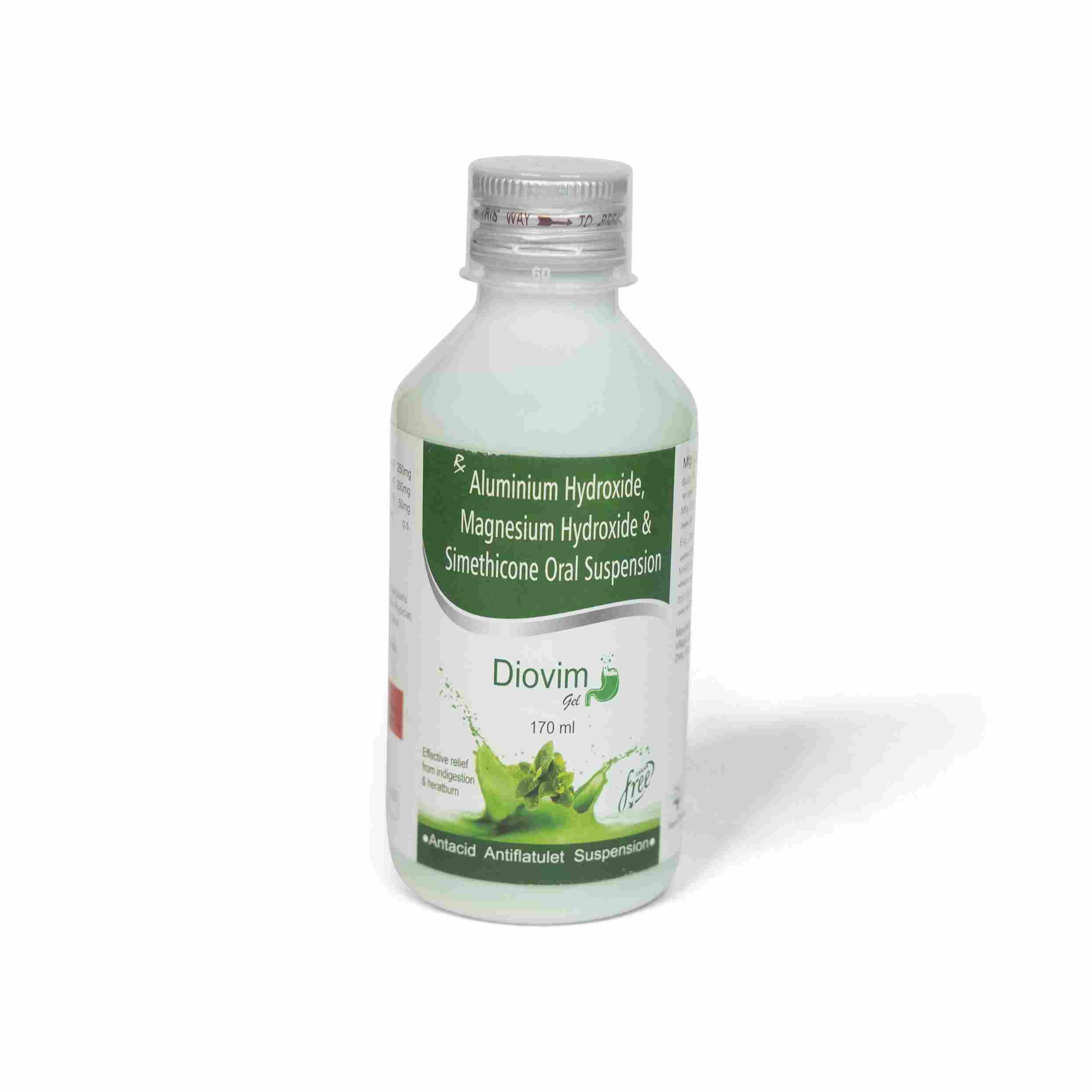 | DIOVIM GEL (sugar free) | EACH 10 ML CONTAINS DRIED ALUMINIUM HYDROXIDE IP 250mg MAGNESIUM HYDROXIDE IP 200mg SIMETHICONE IP 50mg |